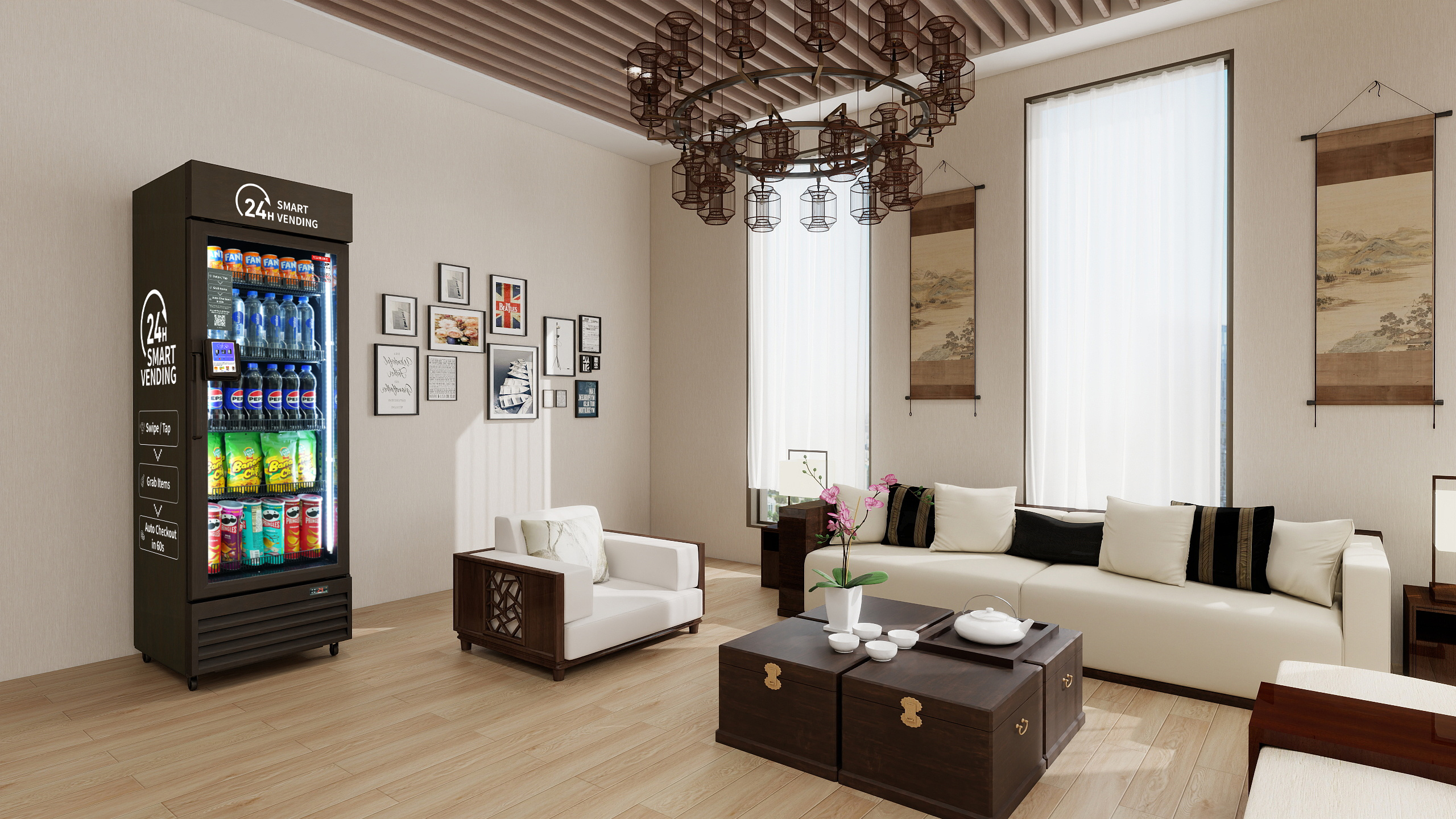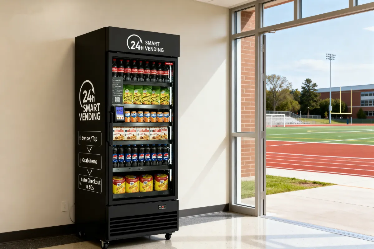 Cashless & Easy – Tap or swipe, grab your items, close the door, and checkout happens automatically—no cash, coins, or fumbling with buttons.